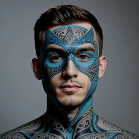 이 모델은 패턴이 있는 피부 및/또는 피부 텍스처를 가진 남성(및 여성)을 그리는 데 도움을 줍니다. 여기에는 페이스 페인트, 바디 페인트, 타투, 인간형, 그리고 꼭 맞는 옷이 포함됩니다.