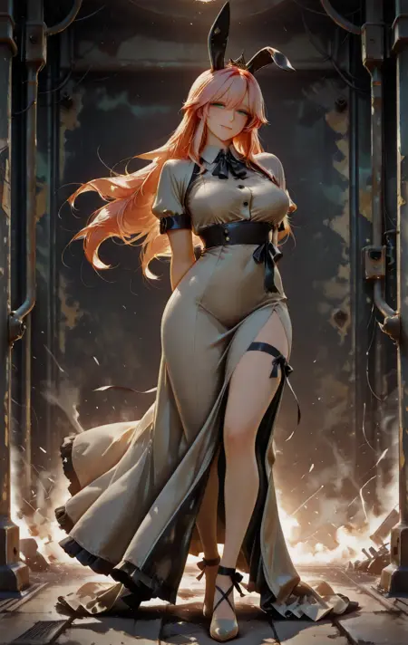 额外训练的触发词:动物耳朵、黑色手套、黑色连裤袜、金发、发辫、胸部、有领衬衫、露指手套、手套、绿色短裙、异瞳、黄眼、红眼、大胸部、长发、长袖、低双马尾、连裤袜、兔耳、衬衫、短裙、单人、双马尾、非常长的头发、白衬衫、领结、黑色领结、全身、蓝眼、红眼、大腿绑带、看向观众、站立、百褶裙、简单背景、灰色背景、闭嘴、剑、臀部、武器、持剑、兔尾、持武器、肘部手套、手持、尾巴、发饰、黄眼、发夹、 pouch、假动物耳朵、内衣、刘海、黄色领结、首饰、阴影、两侧向上、鞋子、橙色领结、靴子、绿眼、黑色鞋履、ahoge、橙发、橙眼、头发在眼睛之间、耳环、侧躺、躺下、动物耳朵绒毛、伸展双臂、蝴蝶结、领结、棕色连裤袜、女仆头饰、回头看、臂带、高跟鞋、高跟靴、内裤、仰躺、双臂上举、坐着、大腿高筒连裤袜、无鞋、户外、大腿、腿抬起、飘浮的头发、交叉双腿、看别处、手臂上举、束缚具、夹克、绿色夹克、废墟、敞开夹克、中等胸部、高腰裙、双腿抬起、丁字裤、脚、脚趾、脚底、马尾、和式坐姿、微张嘴唇、月亮、一侧向上、多个女孩、单人焦点、v形、袖口、面具、贴地、口罩、侧面视角、手臂在胸部下方、黑色领结、交叉双臂、室内、从背后、头发遮挡、印度式坐姿、包、红色领结、铃铛、颈巾、丝带、在地板上、黑色腰带、俯卧、头枕、单脚站立、脚出画框、手臂在胸部下方、胸下、手叉腰、齿轮、纽扣间隙、夜晚、天空、裙子、臂环、时钟、及膝长筒袜、电缆、黑色及膝长筒袜、吊袜带、破损衣物、扬声器、枪、持枪
