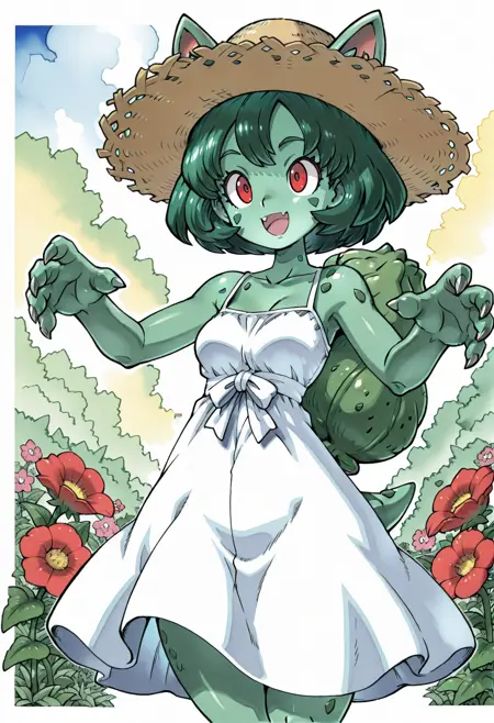 Kinkymation의 Pokemusu 라인에서 가져온 버터플라의 몬스터 걸/gijinka 디자인. 다소 실험적이며, 기본 옷차림은 내가 원하는 만큼 일관되지 않다(그녀는 자신의 덩굴로 옷을 잡고 있어야 한다). 하지만 데이터셋의 크기를 고려하면 기능적이다.