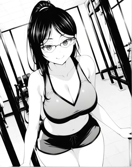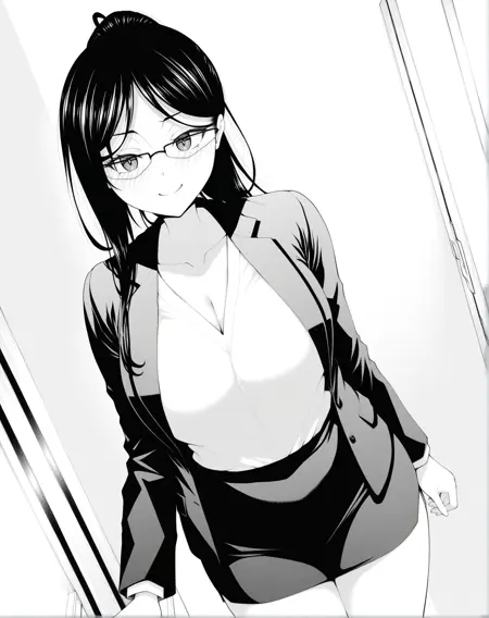 모노크롬, 회색조, yoshinmommy, 긴 머리, 포니테일, 안경
