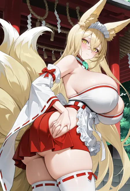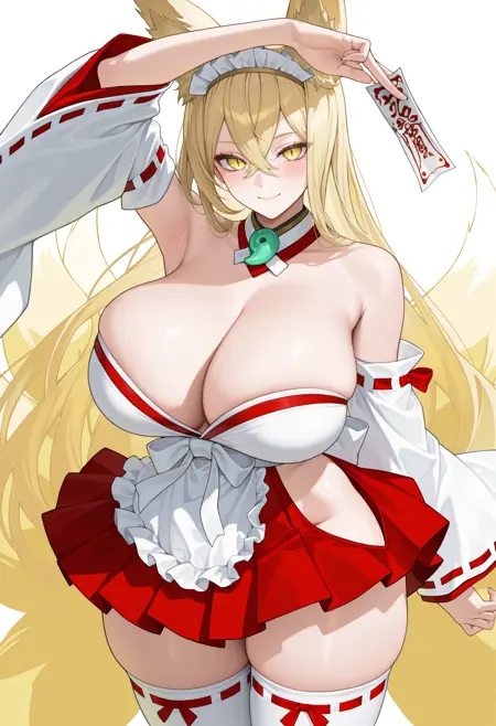| トレーニングワード | jelohruedef, yellow eyes, slit pupils, animal ears, multiple tails, blonde hair, hair between eyes, crossed bangs, long hair, frilled hairband, detached collar, magatama necklace, bare shoulders, detached sleeves, ribbon-trimmed sleeves, wide sleeves, japanese clothes, hakama short skirt, red skirt, hip vent, white apron, frilled apron, thick thighs, white thighhighs, ribbon-trimmed thighhighsコピーしました! jelohruesu, yellow eyes, slit pupils, animal ears, multiple tails, blonde hair, hair between eyes, crossed bangs, half updo, long hair, hairclip, red hairband, hair bow, red bow, blue choker, magatama, blue sailor collar, red neckerchief, white shirt, cropped shirt, shirt overhang, short sleeves, midriff, pleated skirt, blue skirt, white kneehighsコピーしました! |