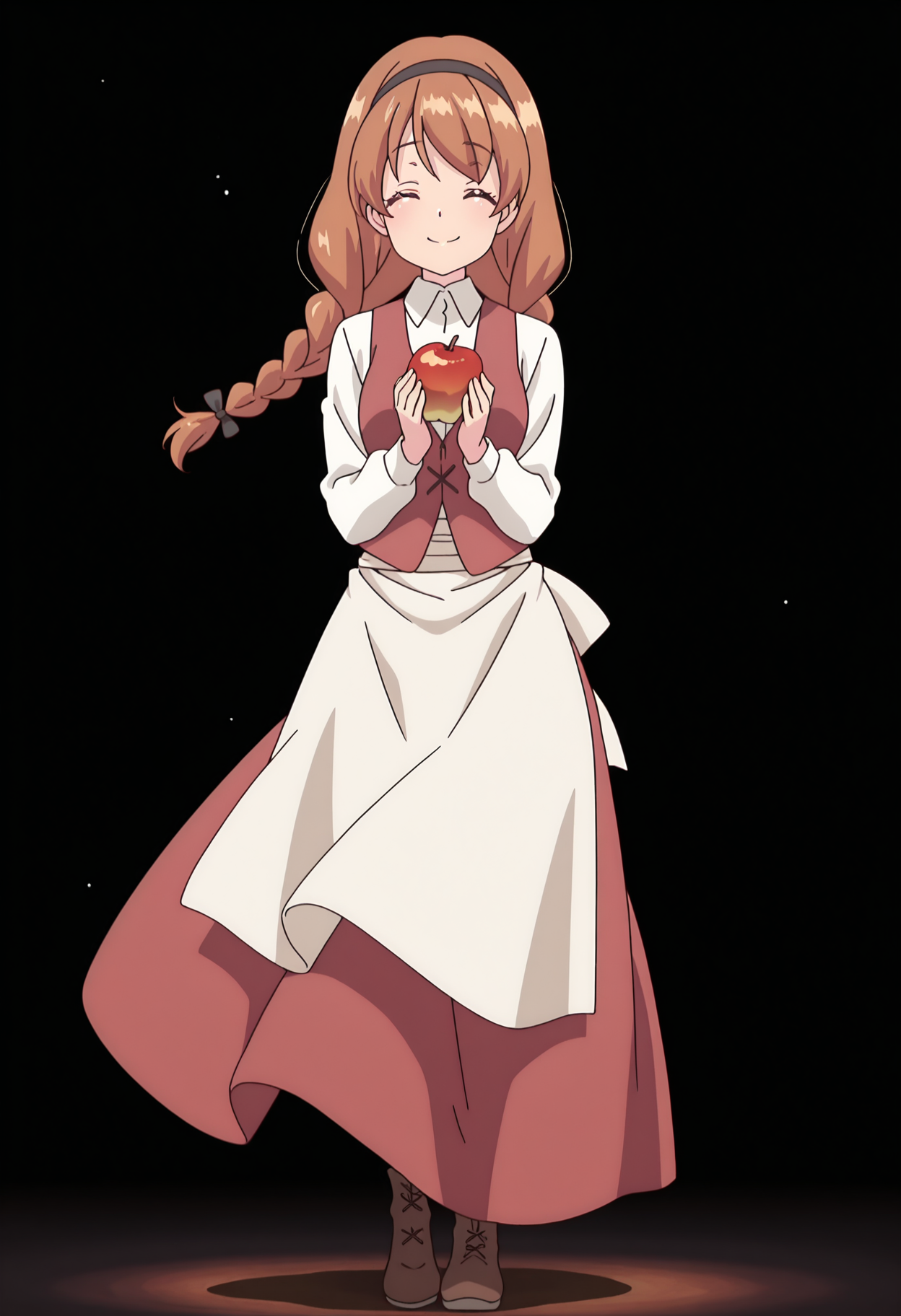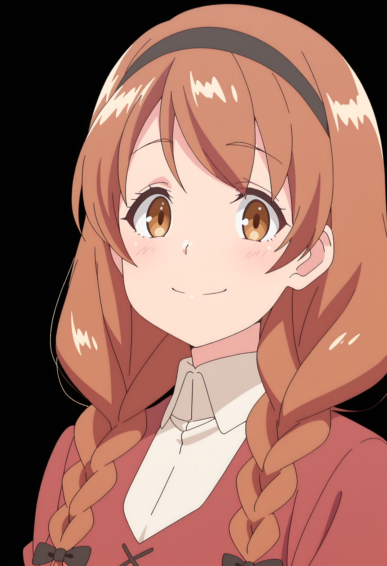 1girl, solo, anna, brown hair, long hair, braid, hairband, brown eyes, bangs, twin braids