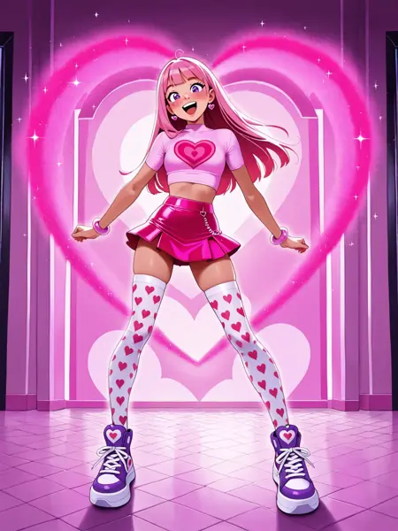 This LoRA features a bold heart logo reminiscent of the Powerpuff Girls outro, perfect for bold, fun, and expressive fashion styling. It was designed with versatility in mind, working especially well on tops like shirts, sleeveless, dresses, crop tops, and more — in any color.