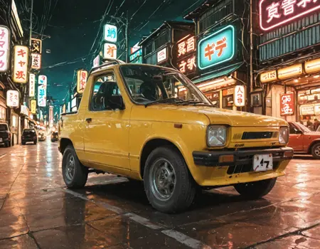 스즈키 마이티 보이를 만나보세요! 80년대의 키 픽업 트럭입니다! 이 차는 트럭의 페이스리프트 버전입니다. 키 자동차는 일본에서 가장 작은 공路边 자동차들을 묶은 카테고리입니다.