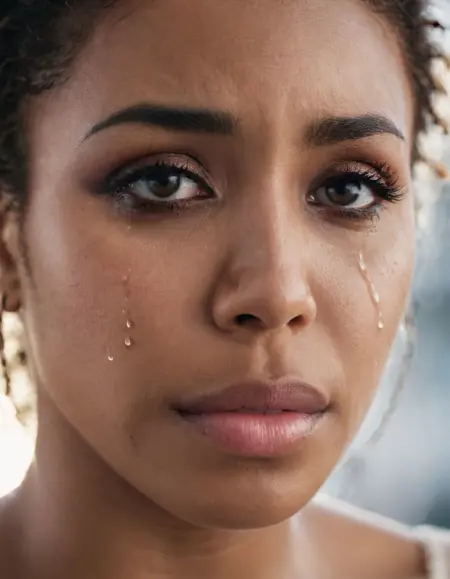 Add crying with tears after your subject to give them a miserable expression and sometimes red eyes and tears.