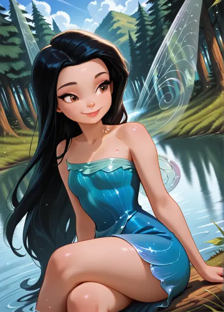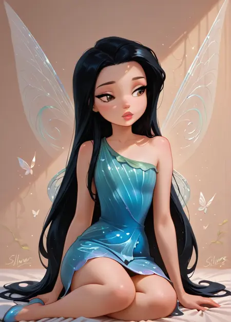 silvermistxd, 1girl, long hair, black hair, pointy ears, brown eyes, fairy wings, fairy