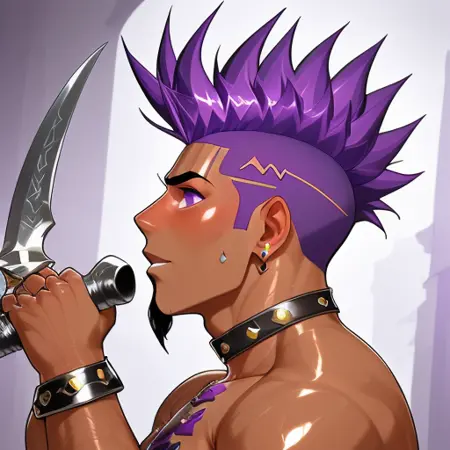leopard tattoo, purple hair,