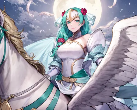 【デフォルト衣装プロンプト】:def_sigrun、サイドスリット、アーマー、黒いズボン、白い膝上ブーツ、白い靴、キャップ、胸当て、ベルト、指なし手袋、ドレス、肩アーマー、肘ガード、白いキャップ、腕ガード、タートルネック