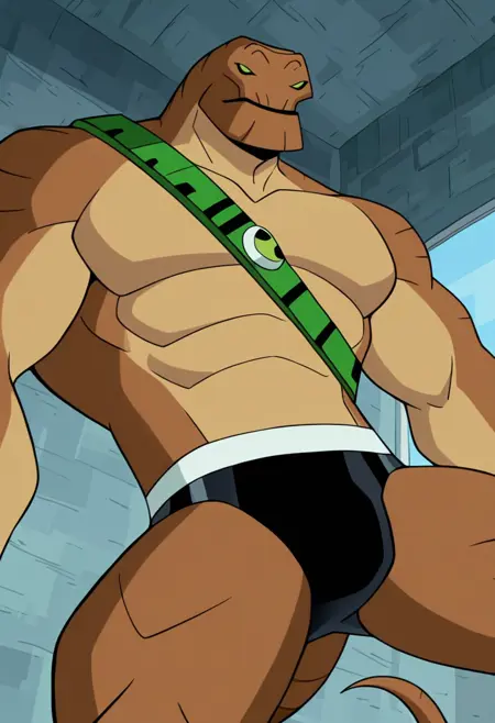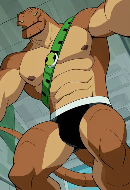 humugousaur, 1boy, 녹색 눈, 속옷, 꼬리, 브리프, 근육질, 남성 속옷, 검은 남성 속옷, 근육질 남성