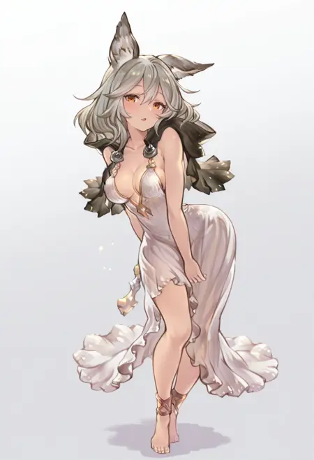 gbf_s3ncat, animal ears, grey hair, long hair, hair between eyes, orange eyes,