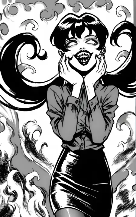 強化タグ:白目、黒髪、ツインテール、肌が白い、低めのツインテール