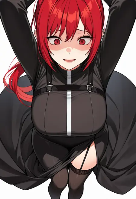 inquisitor_cnr,1girl, red hair, long hair, ponytail, red eyes, large breasts,