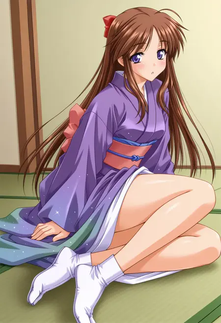 外观:saigaku_kura_s,棕色头发,长发,分刘海,发带,紫色眼睛,中等胸部,