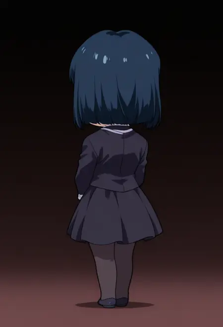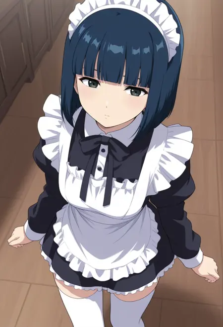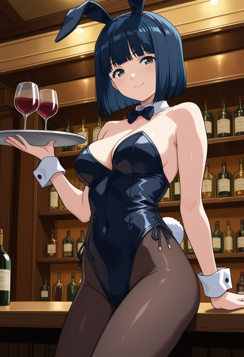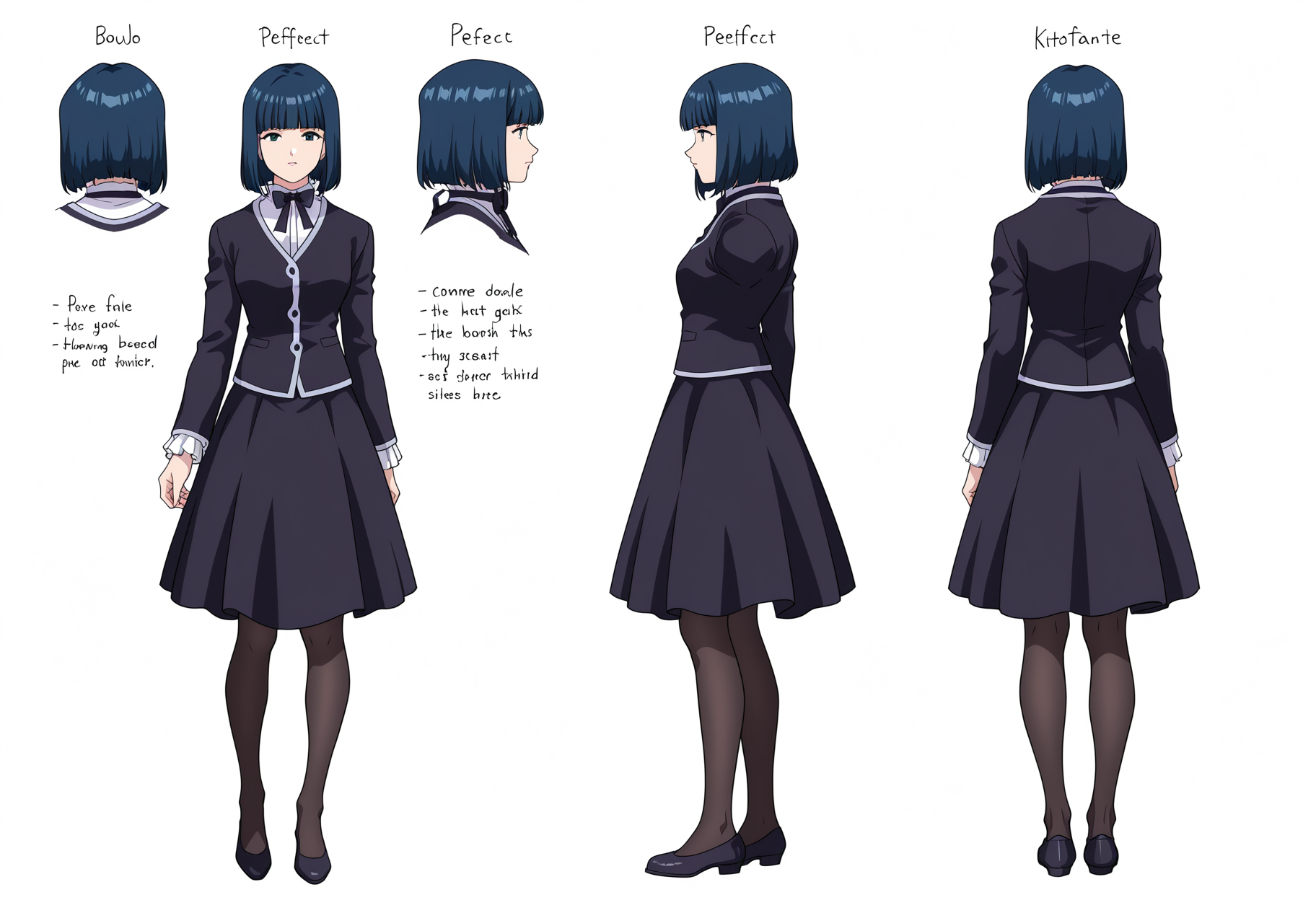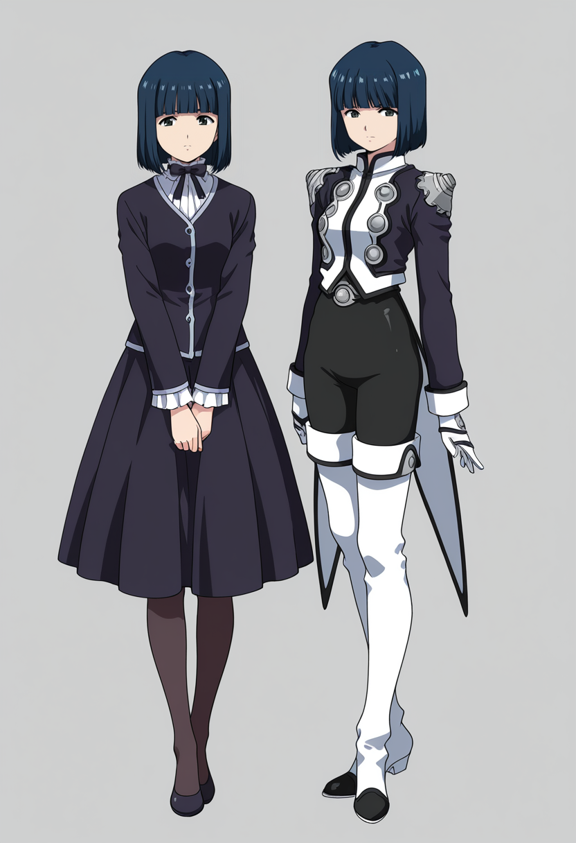 kitaoojihanabi,short hair,blue hair,bob cut,black hair,black eyes,green eyes,blunt bangs,