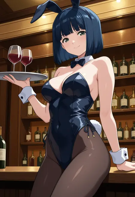kitaoojihanabi,短发,蓝发,波波头,黑发,黑眼,绿眼,齐刘海,
