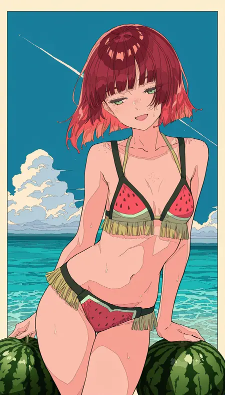 명확하고 강렬한 선을 사용하며, 선의 두께는 다양할 수 있지만 색조나 음영은 사용하지 않습니다. 대비도 최소화됩니다. 그림자도 종종 조명을 받으며, 이 스타일은 강렬한 색상과 사실적인 배경에 만화풍 캐릭터를 조합하는 특징을 가집니다.