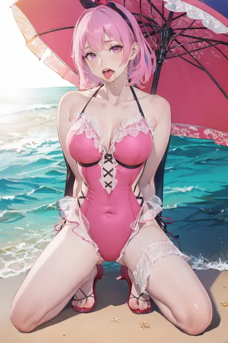 트리거 단어(Trigger word)****: Feria Shen,hairband,pink leotard,frills,ribbon,backless swimsuit,cross-laced clothes,high heels,leg ribbon,