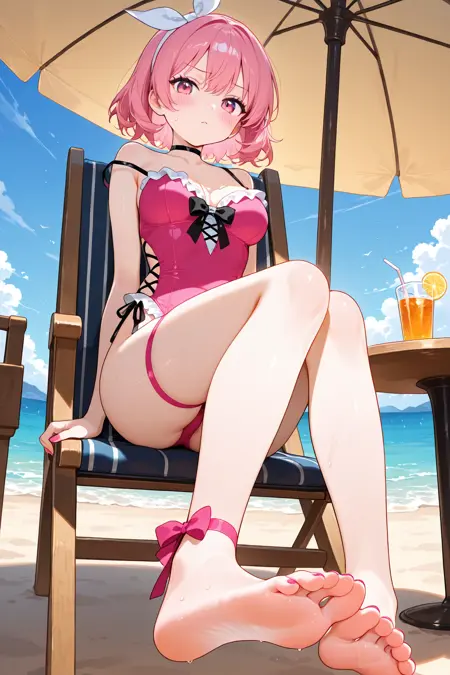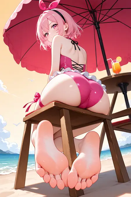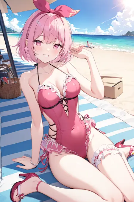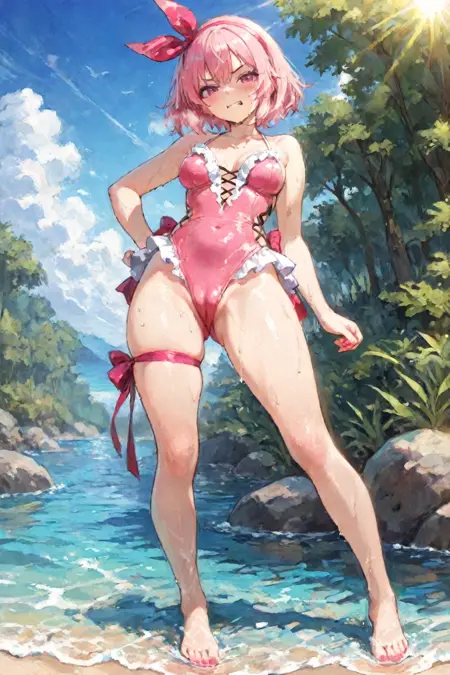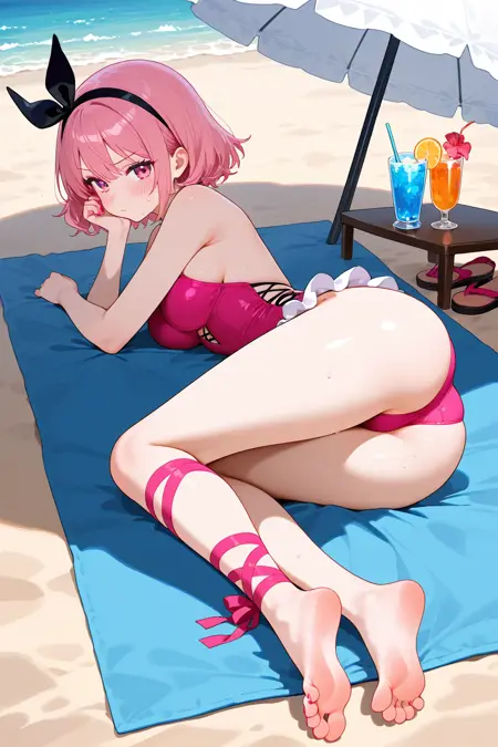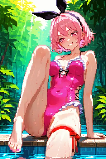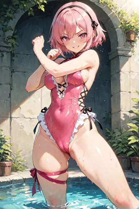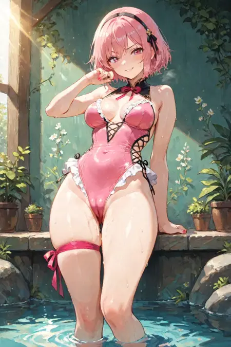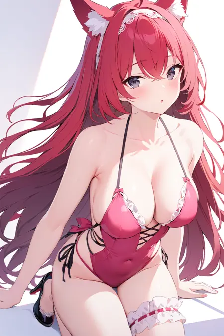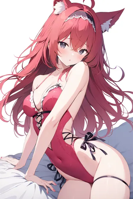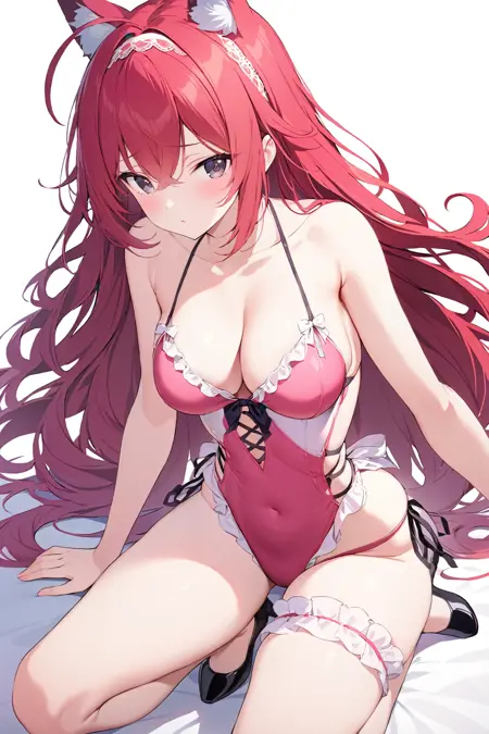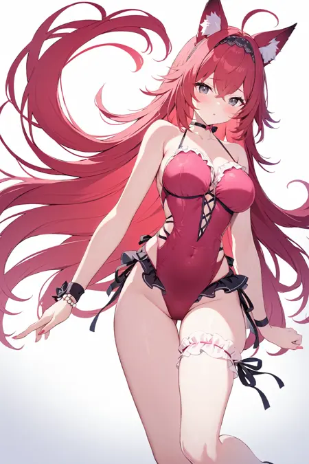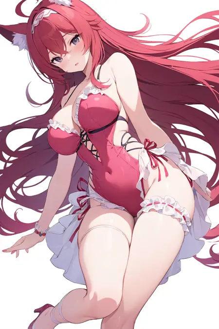 触发词(Trigger word)****: Feria Shen,hairband,pink leotard,frills,ribbon,backless swimsuit,cross-laced clothes,high heels,leg ribbon,