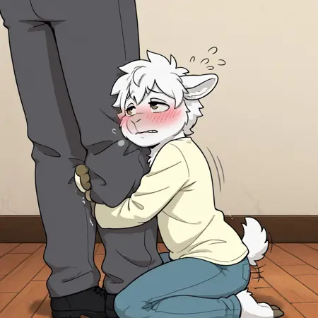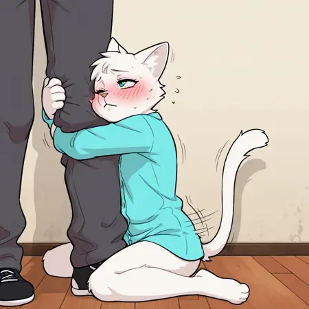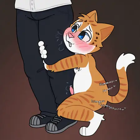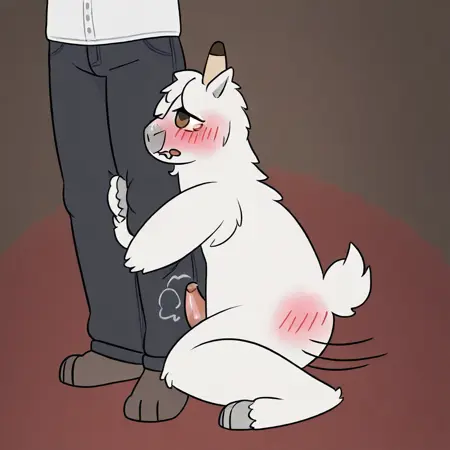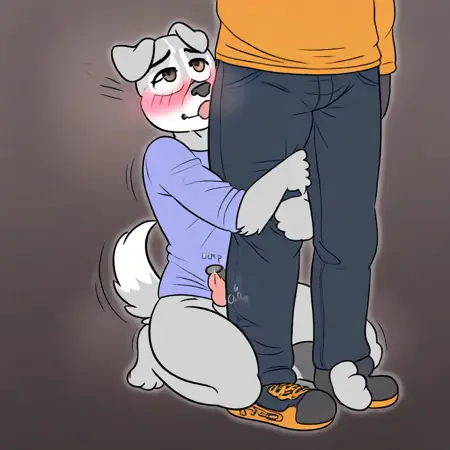 Humping leg, hugging leg, Furry, anthro, solo focus, casual clothing, shirt, pants, blush, submissive,