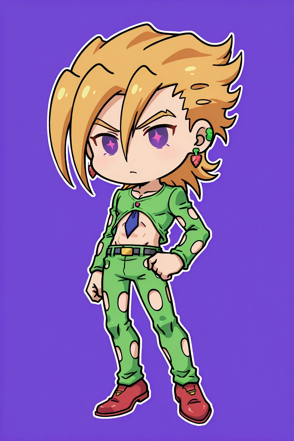 fugoFNF, 1boy, stud earrings, blue necktie, belt, purple eyes, pannacotta fugo, short, chibi, no sclera