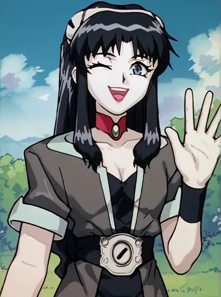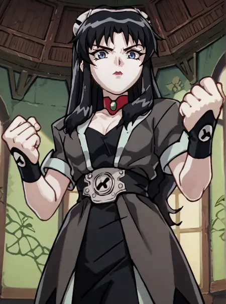 IfuritaTV, 1girl, pale skin, dark blue eyes, long black hair, i8t4 tiara, if3rut3 clothes, lipstick,