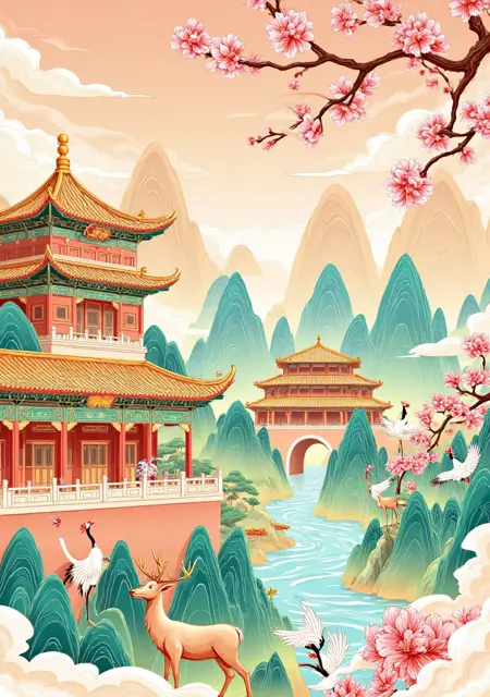 A_Guochao Architectural Illustrations_Ancient Style Scene Generation