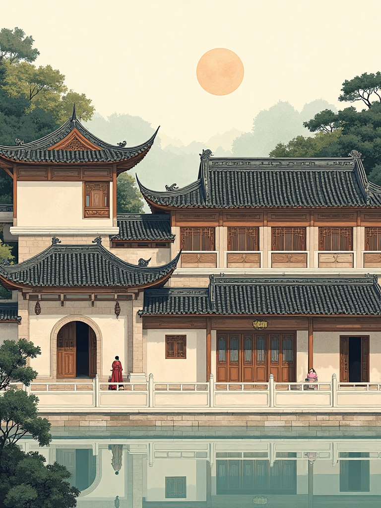 It is suitable for creating ancient architectural scenes, from ancient town views to palace segments, helping to generate various Chinese-style architectural images.