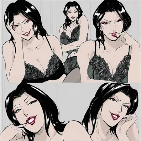 正直、私の好みではありません。特に矢島夫人の話はそうなので、念のため警告しておきます。でも、由希広のアートスタイルは大好きで、特に悪役女性の描き方にはとても惹かれます。なので、ここに掲載します。