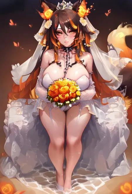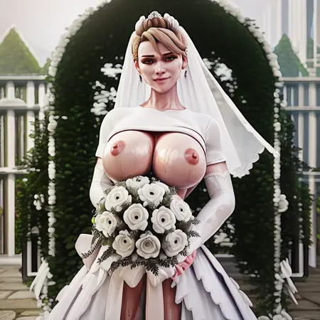 (Wedding_Dress, wedding dress, bridal veil, bouquet),