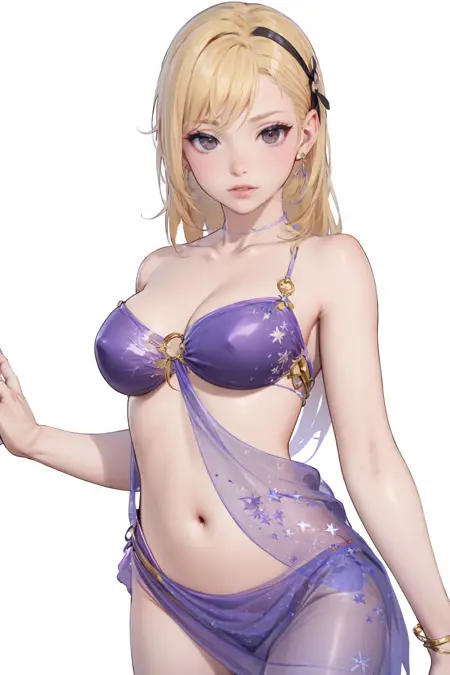 트리거 단어(Trigger word): Cyra,jewelry,navel,swimsuit,bikini,purple bikini,sarong,see-through,o-ring
