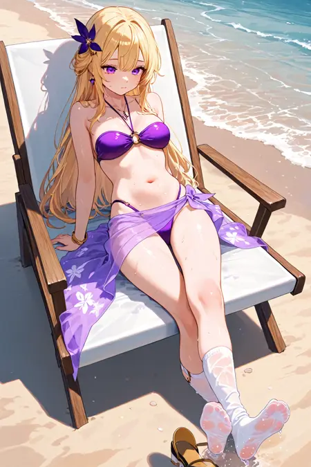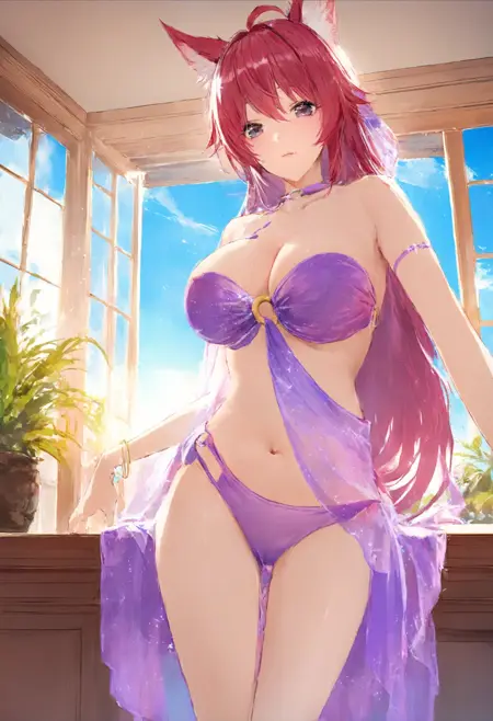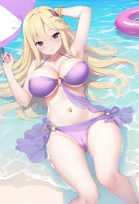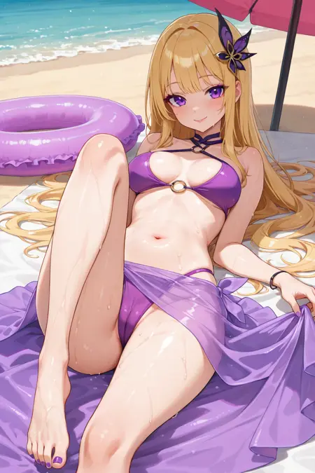 트리거 단어(Trigger word): Cyra,jewelry,navel,swimsuit,bikini,purple bikini,sarong,see-through,o-ring
