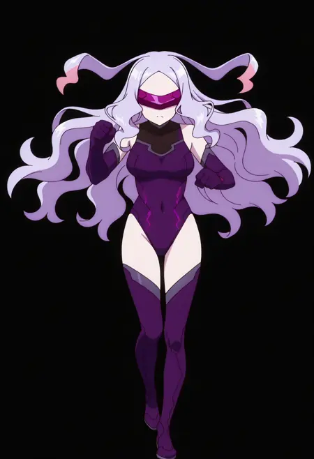 1girl, solo, kalm, long hair, purple hair, wavy hair, very long hair, blindfold