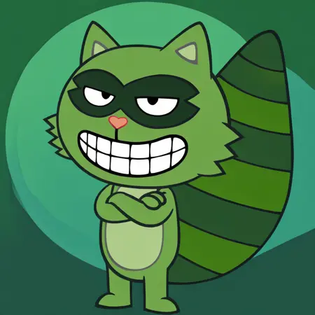 Tags: Furry male, Raccoon, green fur, two-tone fur, tail, striped tail, black eyes, countershade torso, + ("Lifty") OR ("Shifty, Hat")
