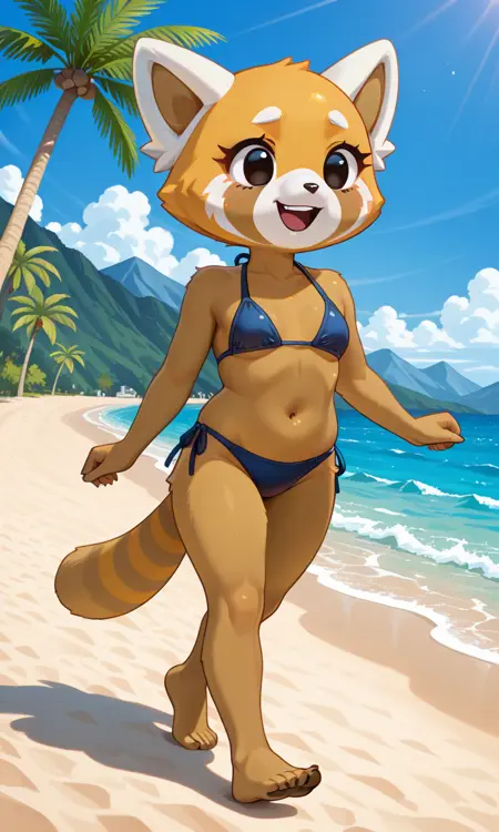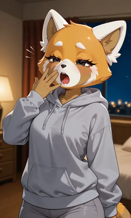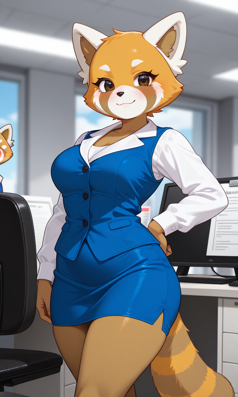 提示词: Retsuko_(Aggretsuko), 人形红熊猫,橙棕色皮毛,双色皮毛
