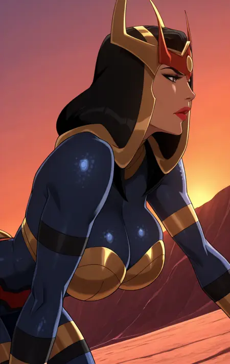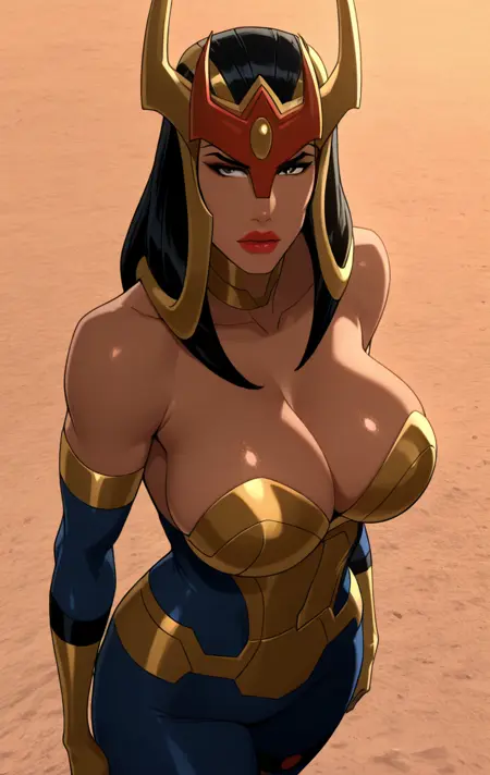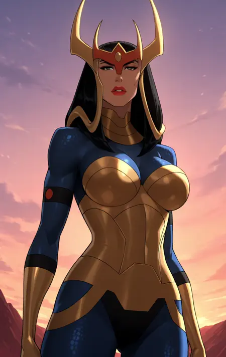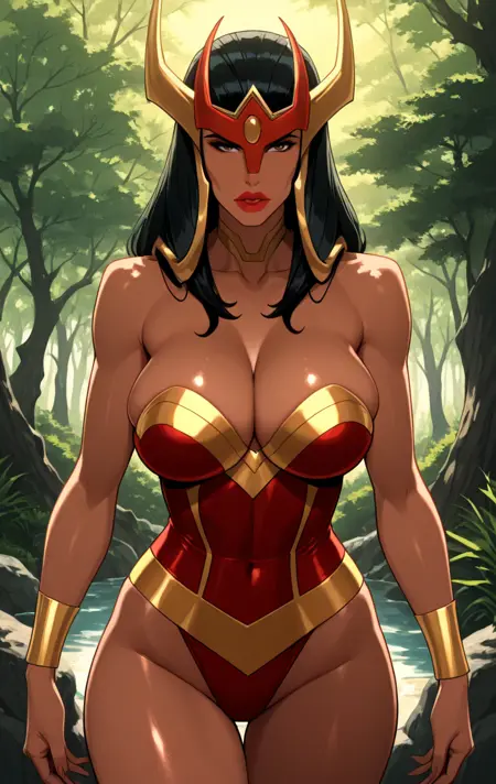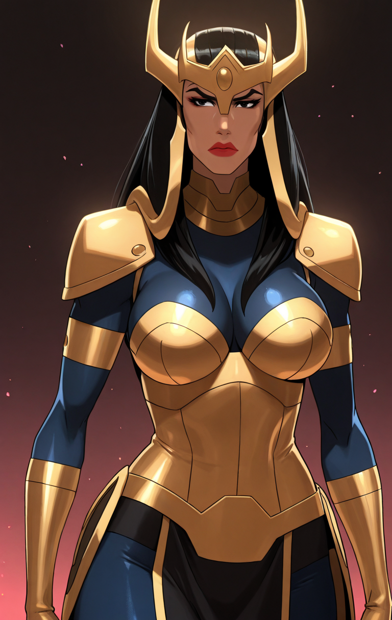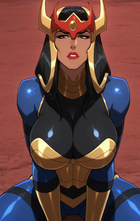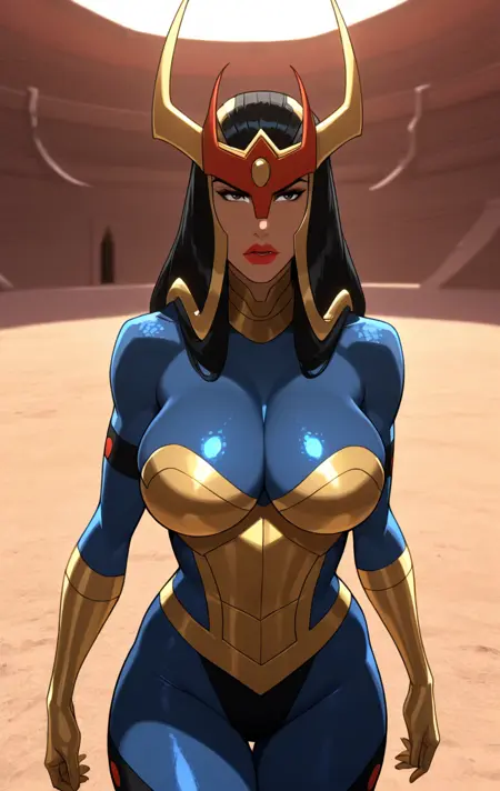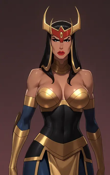 1girl, solo, looking at viewer, black hair, bodysuit,brown eyes, horns, dark skin, dark-skinned female, facing viewer, colored skin, red lips,b4rd4,
