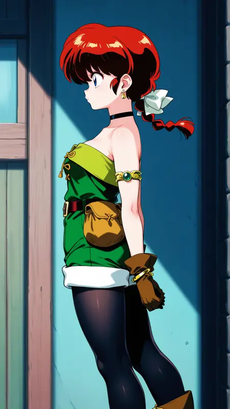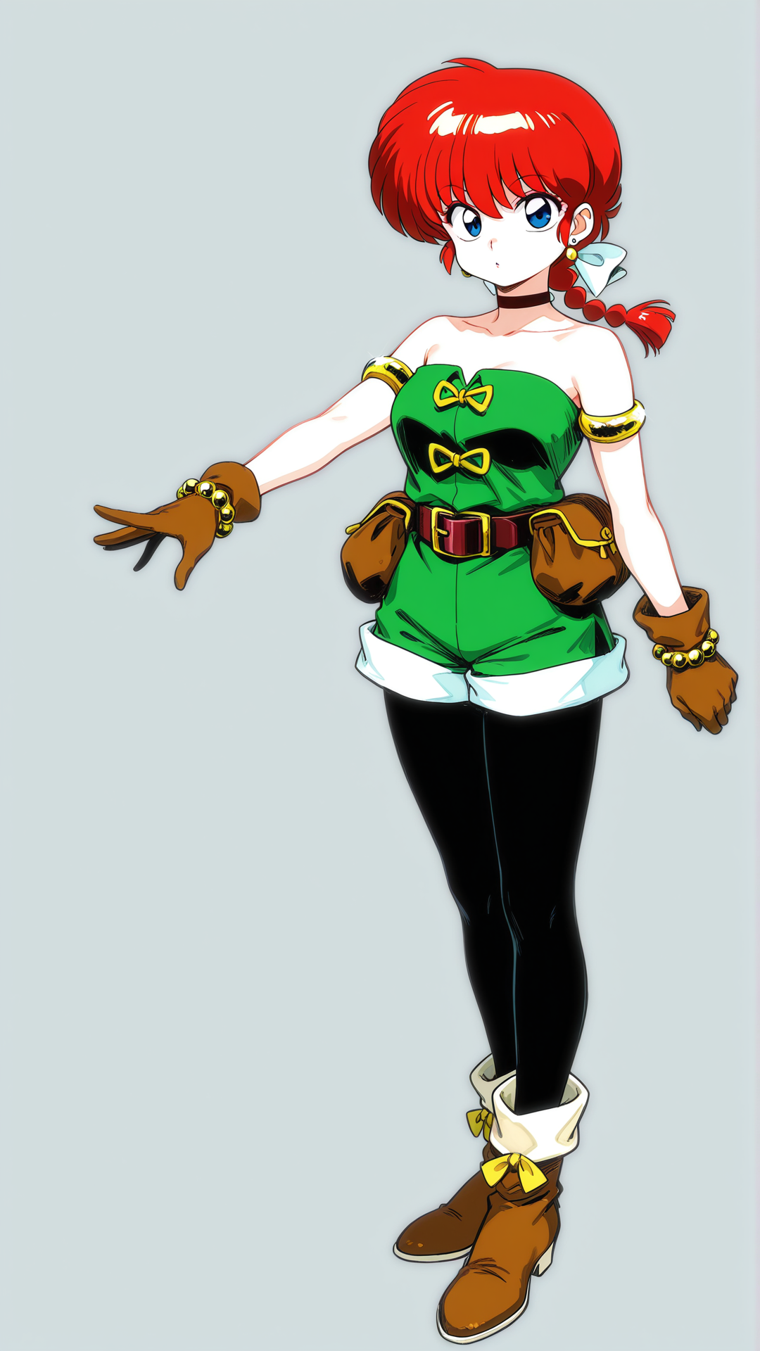トリガー語: virginia_knights\(cosplay\),裸肩, ブーツ, コラー, 短パンの下のタイツ, ジュエリー, ボウ, 茶色の靴, 黒のタイツ, ブレスレット, ベルト, スカート, シャツハイズ, ポーチ, アームレット, 緑の短パン, ドレス, 髪リボン, 茶色の手袋, ピアス,