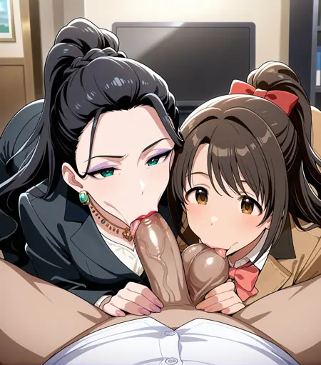 2girls,Ball Licking,fellatio, licking testicles, cooperative fellatio,