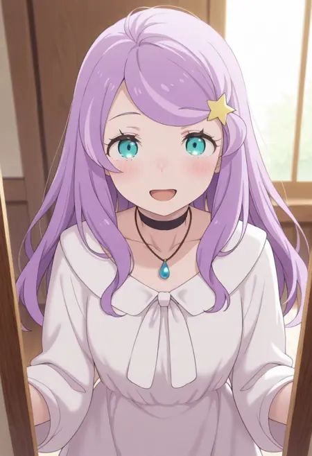 트리거 단어: 안나스타시아 호신, 보라색 머리카락, 별 모양 머리 장식, 긴 머리, 아쿠아 눈