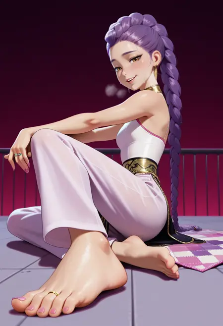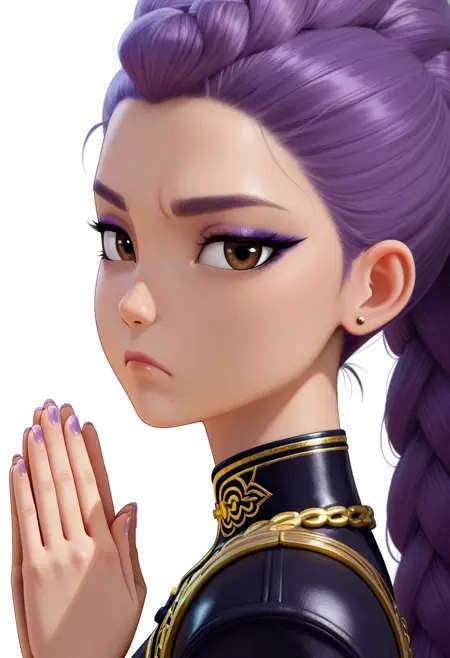 普通模式:KPDH_Rumi,化妆,1个女孩,看着观众,耳环,长编发马尾,紫发,单独一人,棕眼,长发,指甲,指甲油,