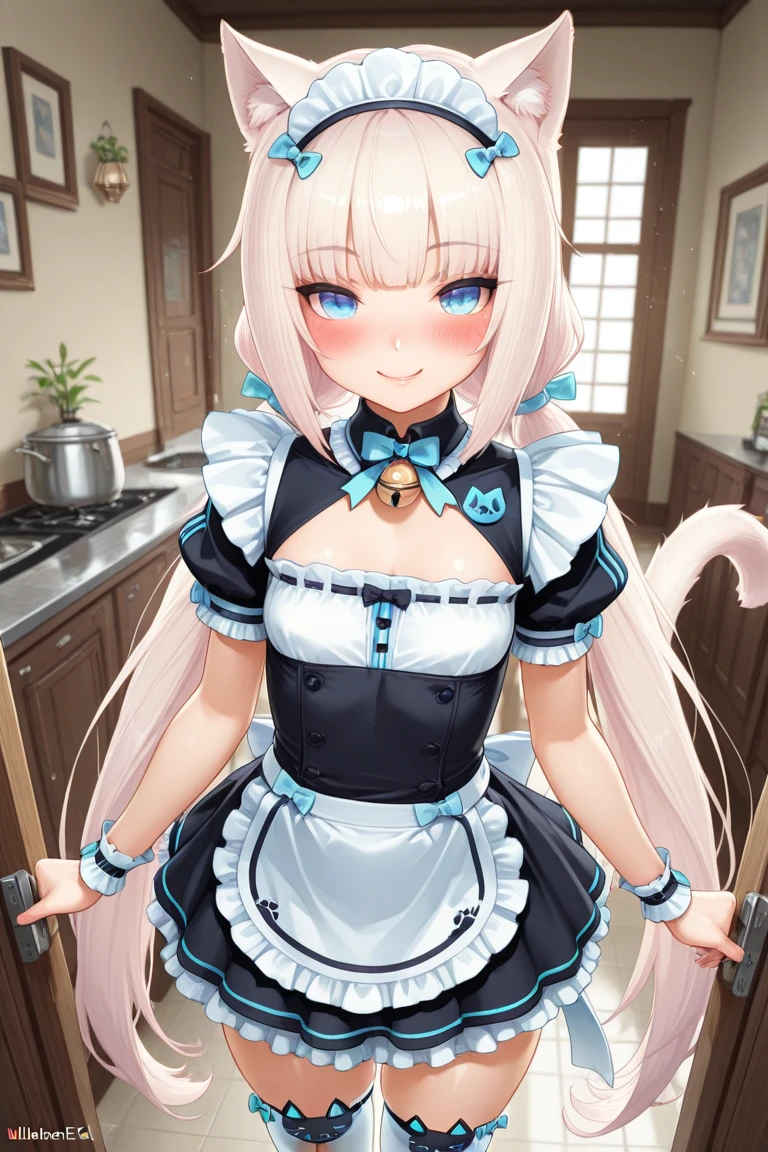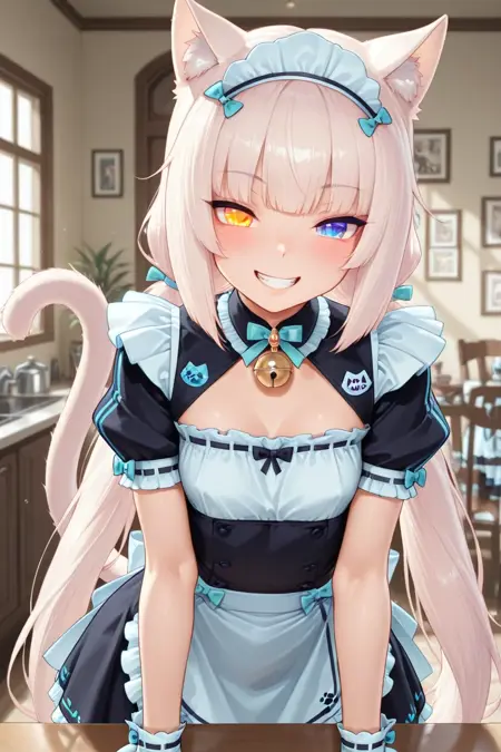 Vannila_NK, catgirl, blue eyes, long white hair, twin tails, cat ears, cat tail,