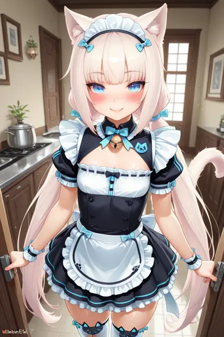 Vannila_NK,猫娘,蓝眼睛,长白发,双马尾,猫耳,猫尾,