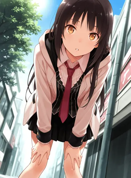 formal shirt, red necktie, open hooded, pleated skirt,靴/鞋子/Footwear: