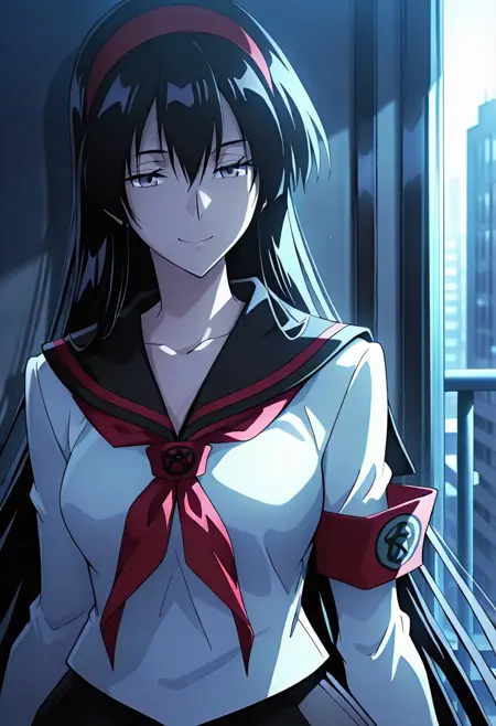 루카, 1명의 여자, 검은 머리카락, 긴 헤어스타일, 회색 눈, 머리띠,