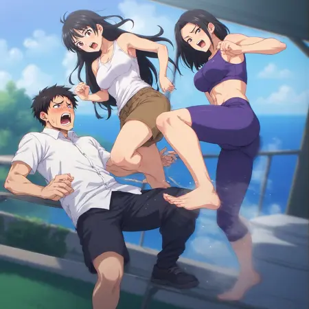 A ballbusting and ball kicking model for creating action scenes of kicks to the groin.