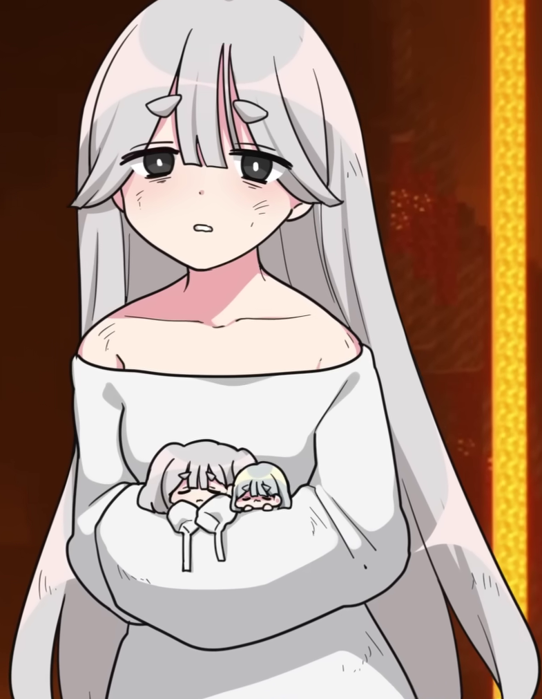 这是游戏《我的世界》中的娘化怪物恶魂之母。使用了主创“泡沫星球”画风制作。