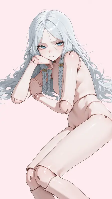r3v3nant, 蓝色眼睛, 玩具关节, 白发, 双辫子, 花环, 头环, 辫子