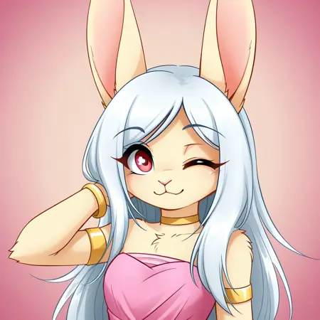 sonette_sd, 1girl, solo, rabbit_girl, long hair, animal ears, rabbit ears, white hair, furry, furry female, red eyes, animal nose, bangs, tail,