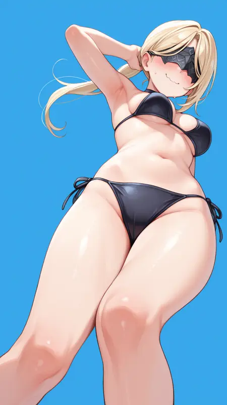 金髪、アイマスク、目隠し、目隠し、ポニーテール