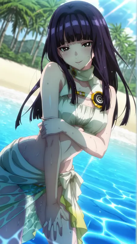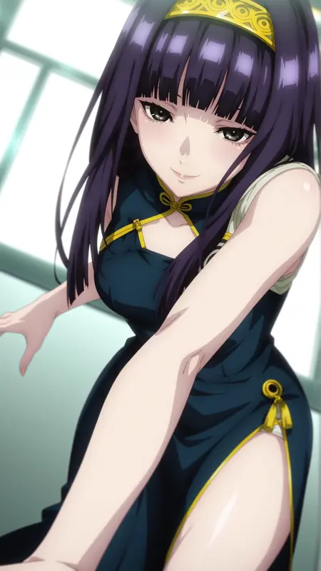 외모: 검은 머리카락, 검은 눈, 긴 머리카락, 곧은 앞머리,