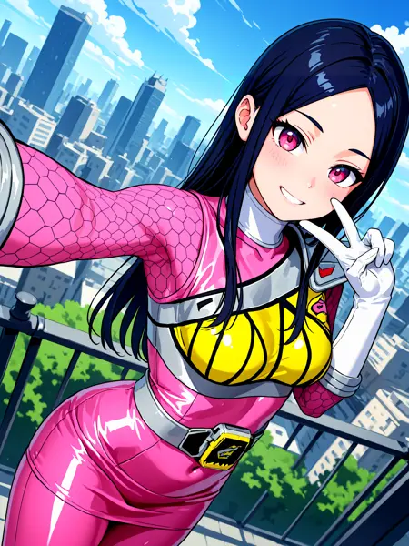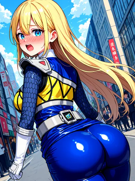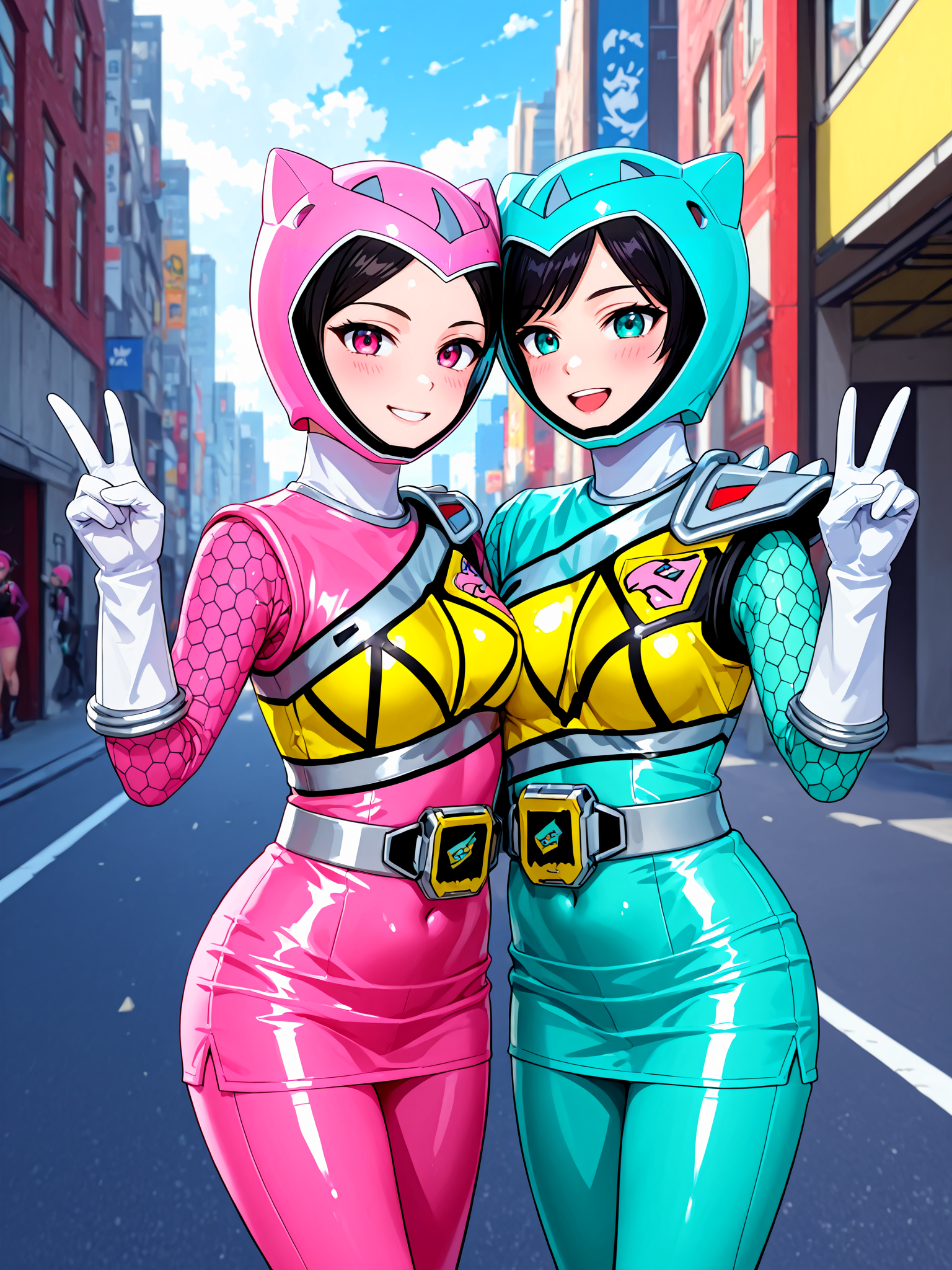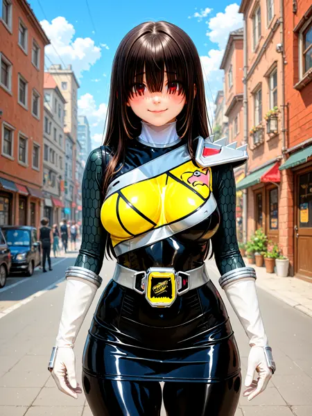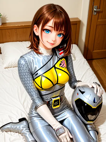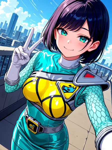 ky0ryug3r, 스판덱스, 반짝이는 의상, [색상!] 바디수트, [색상!] 치마, 흰색 목, 뒤덮인 목, 단일 팔던, 은색 벨트, 높은 벨트, 흰색 장갑, 팔꿈치 장갑, 벌집 무늬